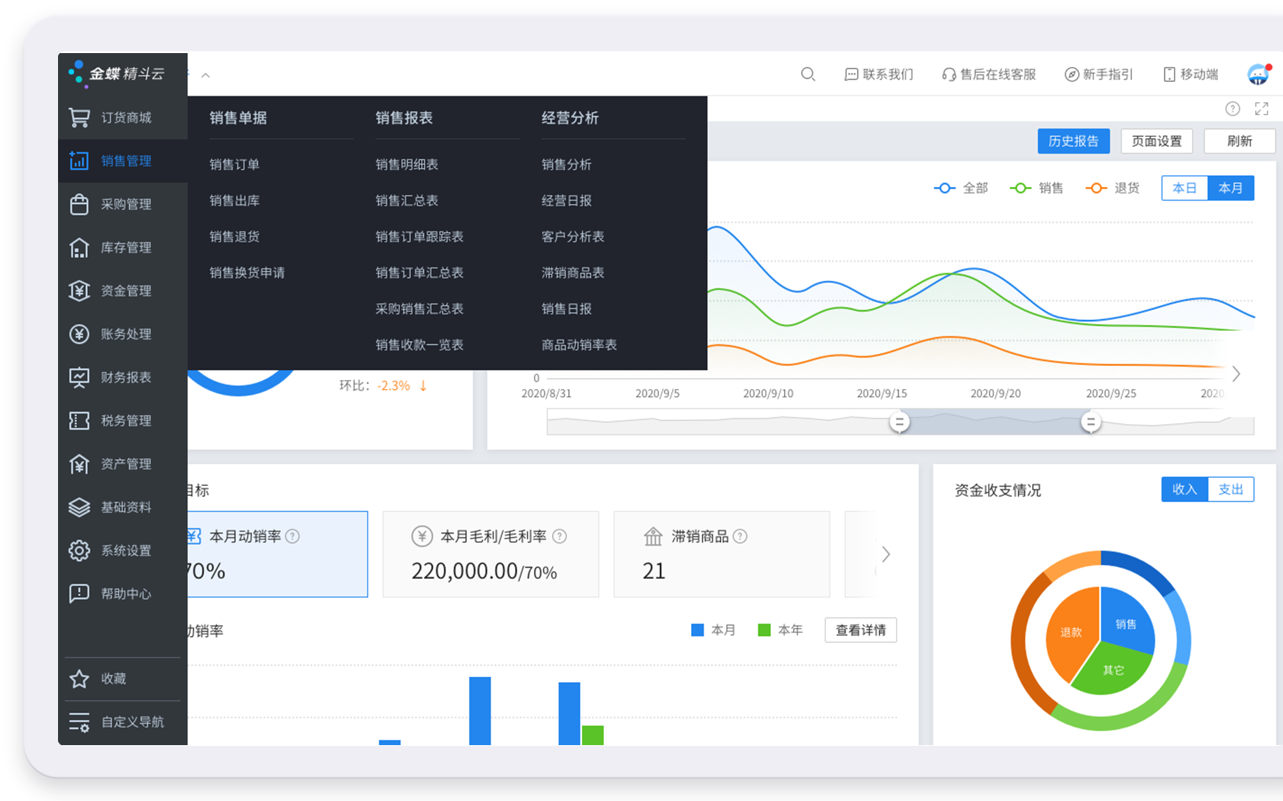 金蝶云·星辰聚焦小型企業(yè)在線經(jīng)營(yíng)和數(shù)字化管理,以“新財(cái)稅、新?tīng)I(yíng)銷、新平臺(tái)”三大特性賦能企業(yè),提供財(cái)務(wù)云、稅務(wù)云、進(jìn)銷存云、訂貨商城等SaaS服務(wù),支持小型企業(yè)拓客開(kāi)源、智能管理、實(shí)時(shí)決策
