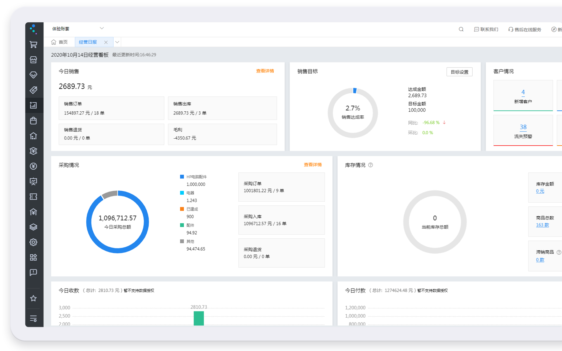 構(gòu)建企業(yè)線上和線下一體化經(jīng)營(yíng)能力,采購(gòu)、銷售、收款、發(fā)票、出入庫(kù)等全流程業(yè)務(wù)跟蹤,實(shí)現(xiàn)業(yè)務(wù)流程閉環(huán)管理