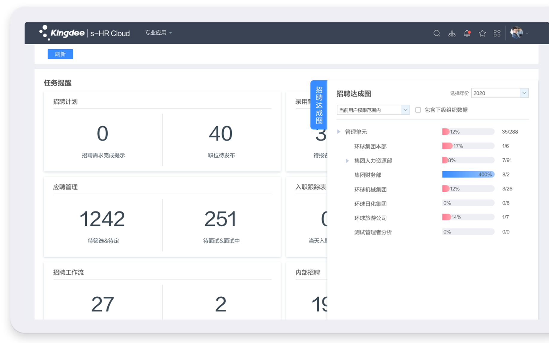 依托集團組織人力編制規(guī)劃和職位任職資格體系,可與企業(yè)官網(wǎng)、第三方網(wǎng)站對接發(fā)布職位信息和收取應(yīng)聘者簡歷,簡歷自動解析入庫,將簡歷在集團內(nèi)成員組織間進行共享。可進行簡歷匹配度篩選、在線安排面試及通知、第三方人才測評、在線發(fā)起錄用審批及錄用off